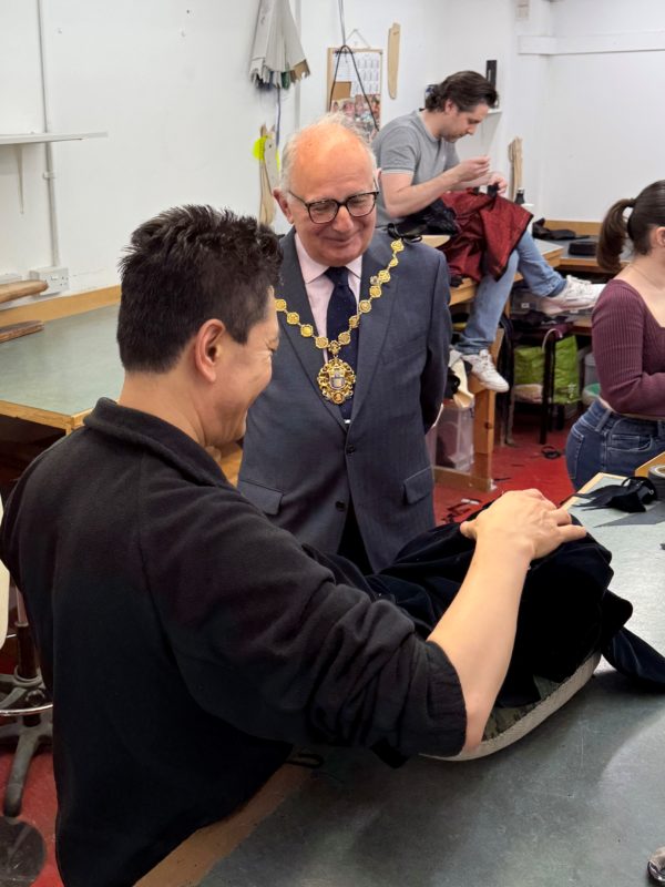 The Lord Mayor visiting Henry Poole & Co. workshop and speaking with our Tailors.